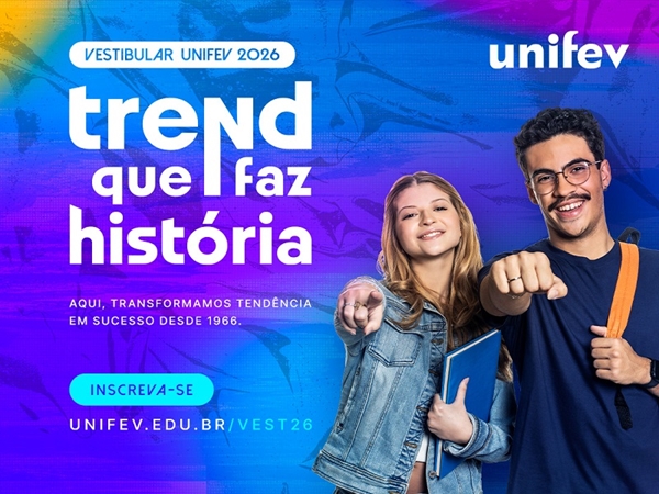 Nesta edição, a campanha do Vestibular traz o mote “Trend que faz história”, em comemoração aos 60 anos da Instituição em 2026. A proposta une linguagem digital e credibilidade acadêmica, reforçando o compromisso da Unifev em transformar tendência em sucesso desde 1966.