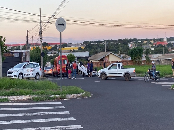 A colisão entre dois carros provocou o tombamento de um deles e feriu levemente uma criança de 5 anos, passageira, hoje (14), no bairro Pacaembu, em Votuporanga.O acidente foi na rua Prof. Maria Eloísa Magossi Silva do Amaral. Com o impacto, um dos veículos ficou com as rodas para cima.