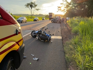 Ela dirigia carro e não resistiu ao impacto de moto em rodovia. Motociclista gravemente ferido