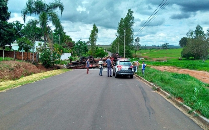 A imagem é impressionante, um caminhão de Fernandópolis carregado com blocos de cimento tombou com as rodas para cima, Avenida Ademar Celis Marcondes,sentido a chácara União, em Dirce Reis, nesta segunda-feira (20/11).
