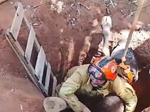Apesar do grande esforço, a equipe comemorou o sucesso e o animal voltou ao pasto em segurança após o salvamento.